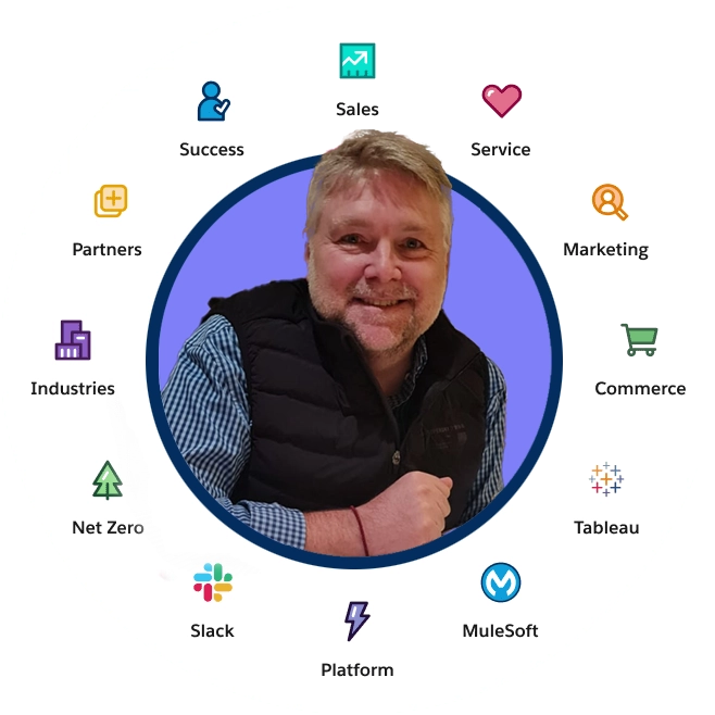 Industries that George have helped include healthcare, manufacturing, finance and banking, business services, retail, education, and non-profit. George also has strong experience implementing Sales Cloud, Service Cloud, Marketing Cloud, Personalization, Omni Studio, Commerce Cloud, Pardot Account Engagement, Experience Cloud, Education, NPSP, Financial Services Cloud, Health Cloud, Field Service Lightning, CPQ and Revenue Cloud, Vlocity/Industry Cloud, Shield/SSO, LWC, Slack, Mulesoft, Tableau and CRM Analytics/Einstein, and many managed packages on AppExchange including Conga, Financialforce, Outreach and High Velocity Sales Engagement. See George's resume for a list of the many Salesforce integrations that he has done.